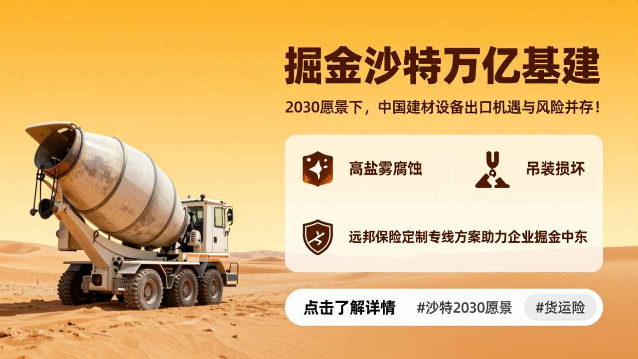 沙特2030愿景正推动中东"向东看",超1万亿美元基建计划为中国建材设备出口打开黄金窗口。中国机械设备出口额连年增长势头攀升。然而,机遇与风险并存——中东海运途中的风险、港口吊装风险,以及沙特严格的SASO认证和ILBZ保税区规则,让货主面临前所未有的挑战。